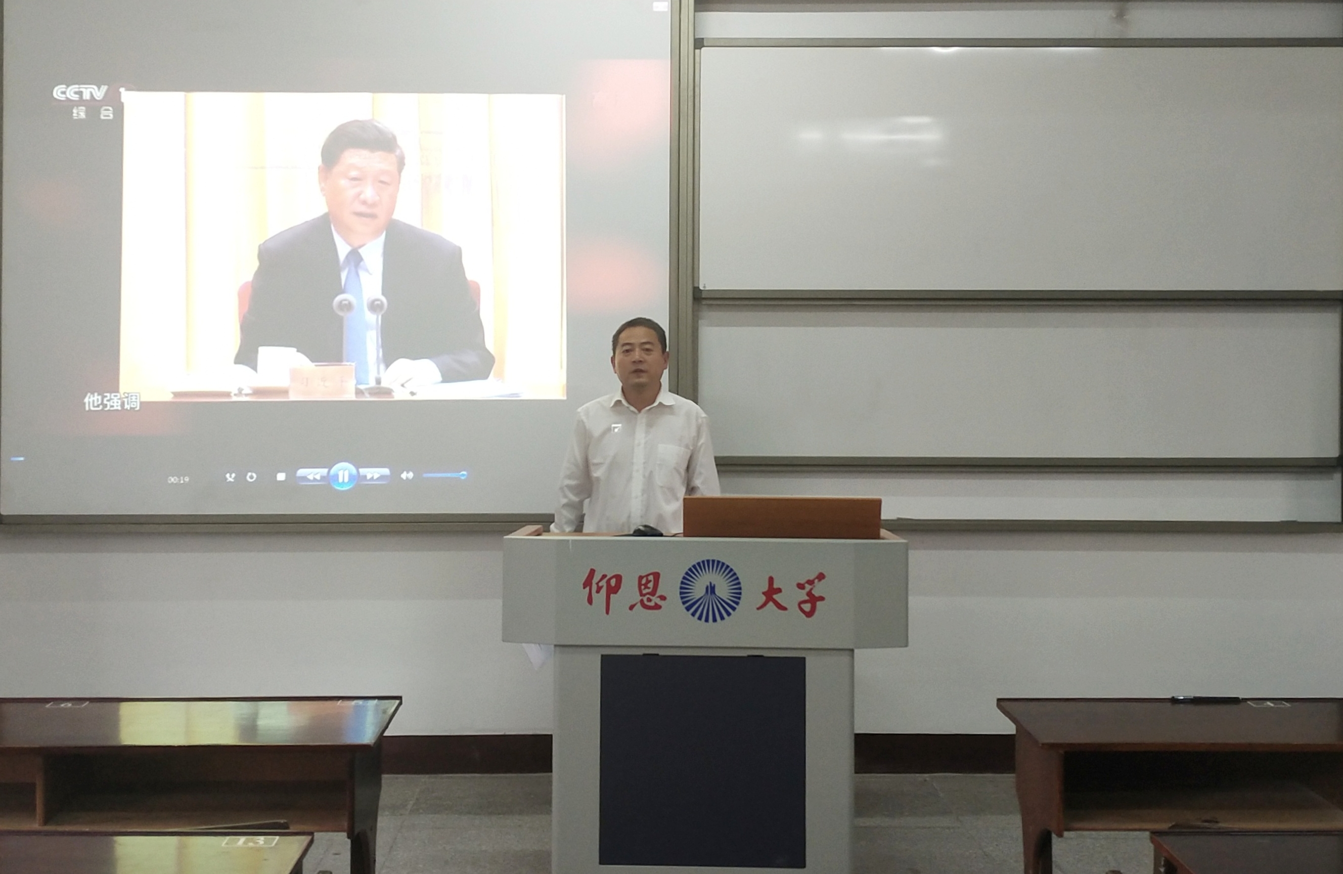 10月24日下午,6776永利集团全体教职工在普照楼311室集中观看了由中央组织部、中央广播电视台总台联合录制的反映优秀共产党员和先进基层党组织典型事迹的专题教育片《榜样4》。6776永利集团直属党支部书记、常务副院长李克钦主持了此次观看活动。