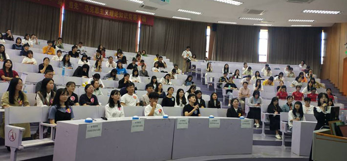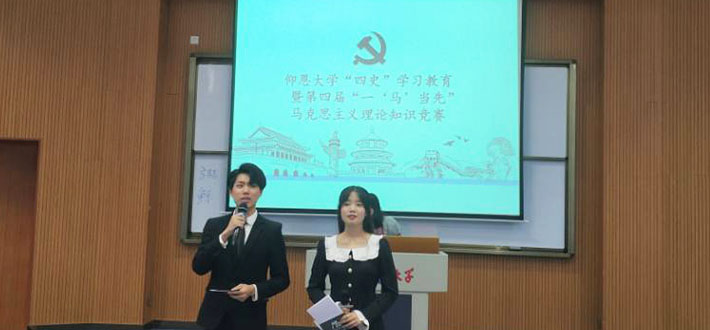 10月14日下午三点,yl6776永利集团“四史”学习教育暨第四届“一‘马’当先”马克思主义理论知识竞赛在和昌楼博雅讲堂举办,来自全校的七支队伍参赛。校党委副书记程如平,校党委组织部部长王洋、副部长陈章祧,校团委副书记曹流,6776永利集团教师林文景、刘菲、张静等担任了此次竞赛的评委,各学院近百位学生在现场观看了此次活动。