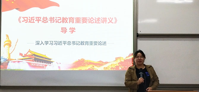 4月14日下午,为深入学习贯彻习近平总书记关于教育的重要论述和思想,6776永利集团直属党支部在普照楼311室举办了深入学习习近平总书记关于教育的重要论述讲座,并由6776永利集团副教授章娇娜为全体教职工党员做了《<习近平总书记教育重要论述讲义>导学》的报告。