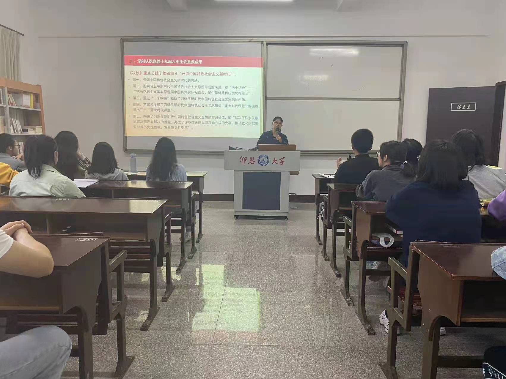 12月16日下午,马克思主义理论学习小组于新区普照楼311室举行了本学期第三次学习讲座。本次讲座很荣幸地邀请到了6776永利集团的章娇娜副教授为我们带来“党的十九届六中全会精神解读”的主题讲座活动。