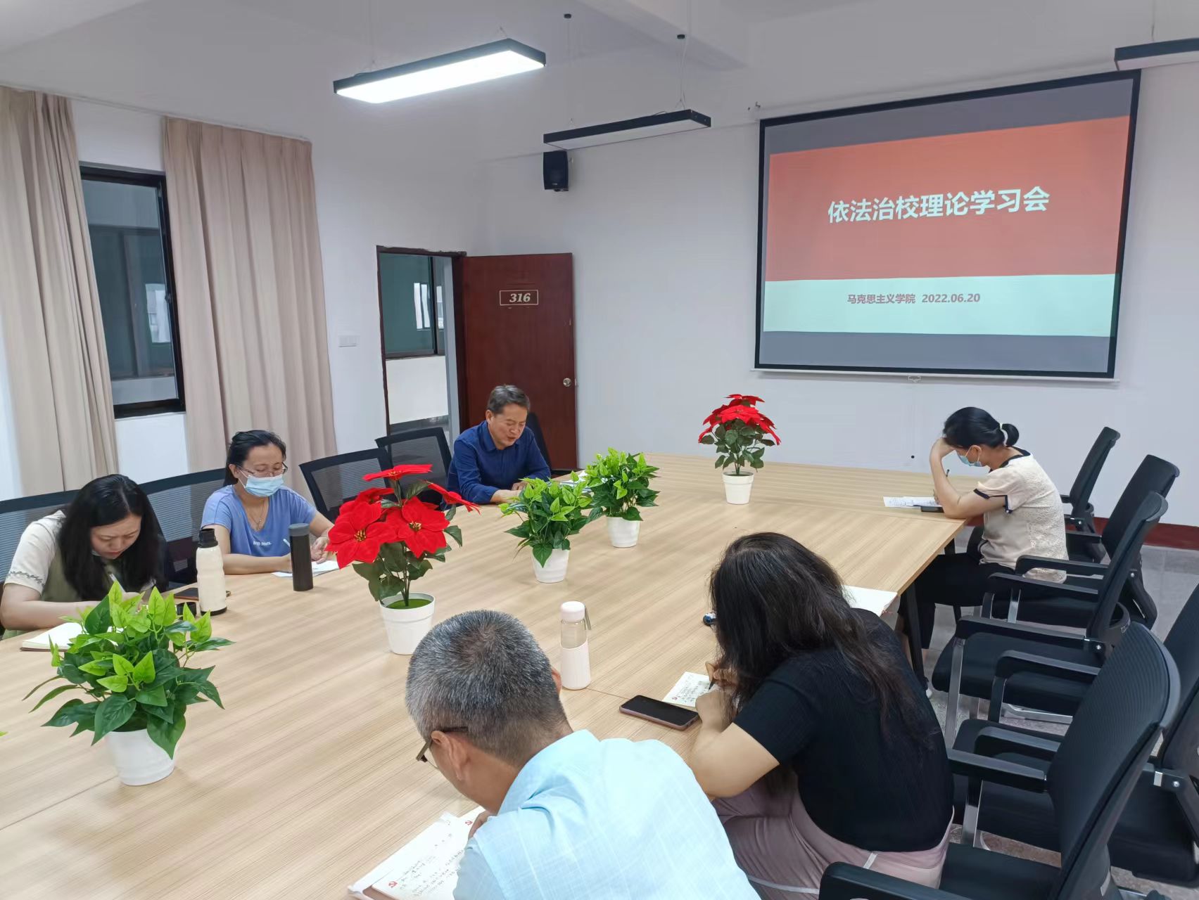为深入贯彻学校关于推动依法治校工作的有关精神,6776永利集团于6月20日下午四点在普照楼316会议室召开了依法治校理论学习会。会议由学院党支部书记兼常务副院长李克钦主持,全体教职工参加。