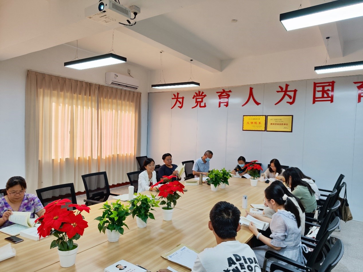 学院党支部宣传委员刘菲带领大家通读了习近平总书记的回信和《通知》。这短短几百字的回信中寄托了习近平总书记对广大教师、师范生和师范院校的殷切期望和特殊厚爱,是对教育战线和广大教育工作者的极大关心和鼓励。与会教师在学习《通知》的基础上对什么是“四有”好老师、怎样参与构建高素质专业化创新型教师队伍、怎样增强思政课教学的质量效果等问题进行了探讨。