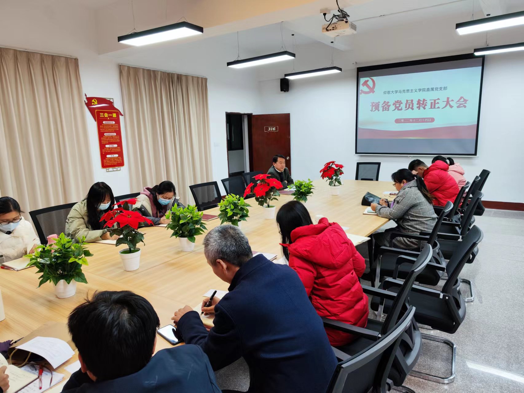 12月14日下午,6776永利集团直属党支部在普照楼316党员活动室召开了预备党员转正大会。在疫情防控条件下,支部全体在校党员、预备党员参与了此次会议。会议由支部组织委员张维伦主持。