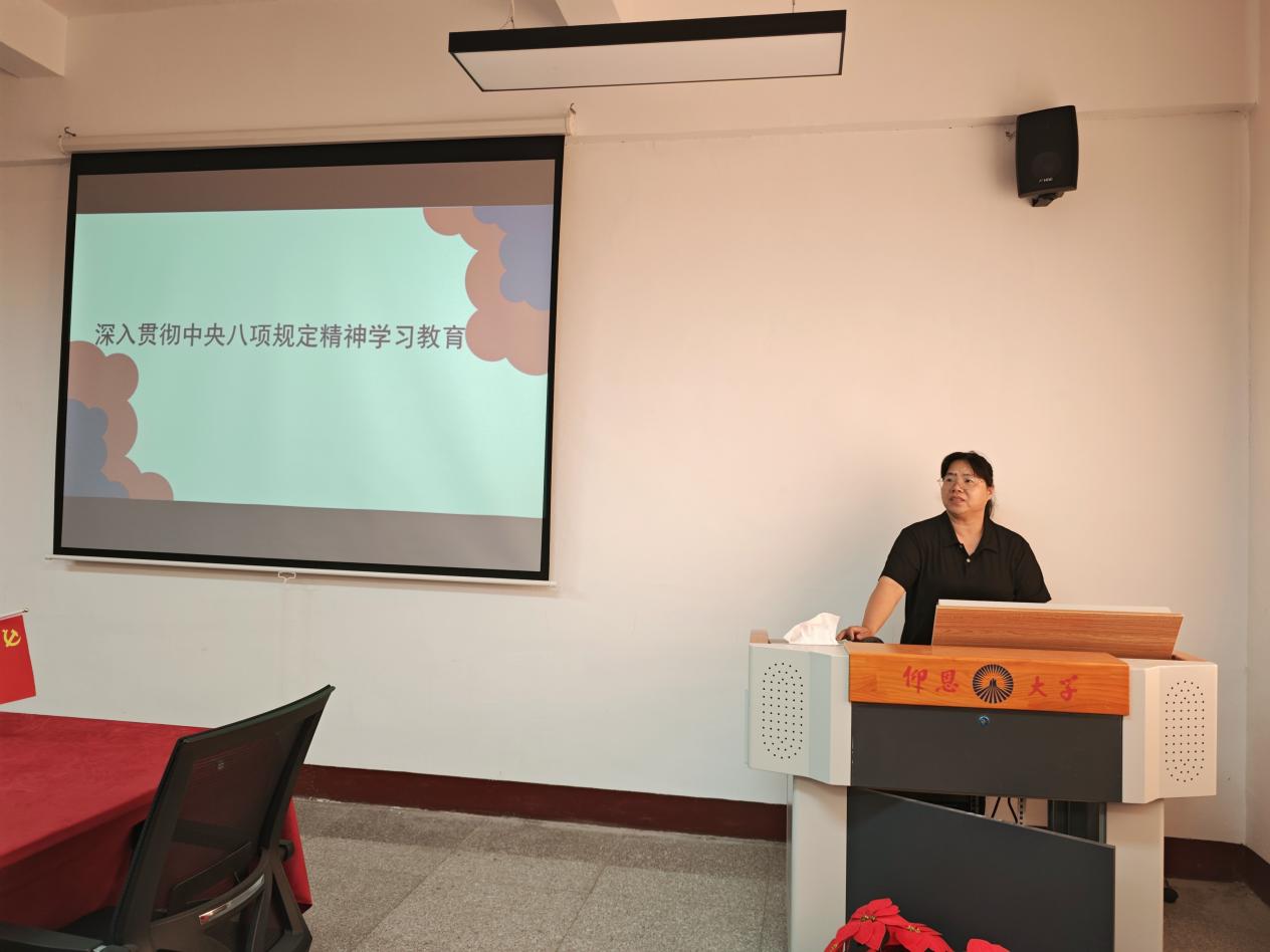 为深入学习贯彻习近平总书记关于加强党的作风建设重要论述和中央八项规定及其实施细则精神,6776永利集团开展深入贯彻中央八项规定精神学习教育活动。会议由6776永利集团直属党支部书记章娇娜主持,全体教师参加此次会议。